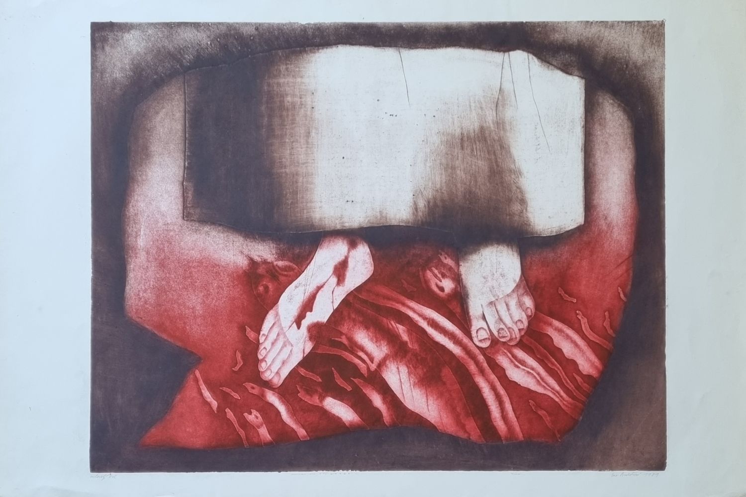 | Barevný lept vpravo dole autorkou tužkou podepsaný a datovaný, vlevo dole autorčin přípis tužkou autorský tisk, volný list. |