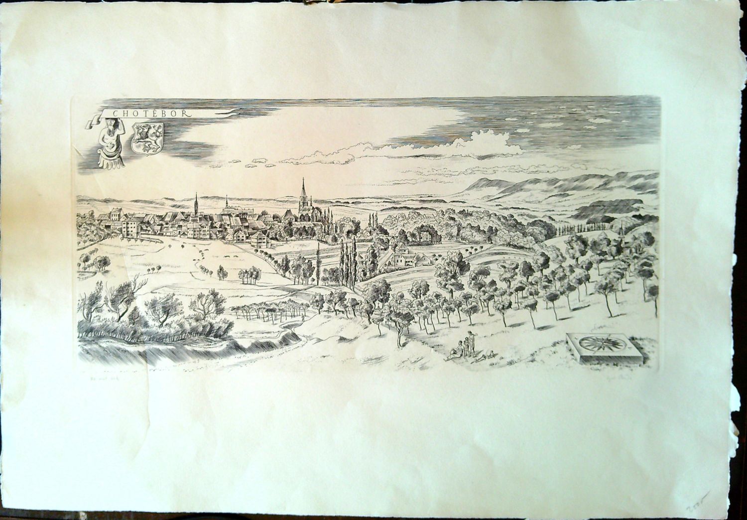 | Původní mědiryt na ručním papíře, autorem tužkou vpravo dole pod deskou signovaný a vlevo dole číslovaný "32"(/140), autorský tisk, volný list. Papír při okrajích místy roztřepený a neoříznutý, po celé ploše nepatrně zvlněný. Při levém vnitřním okraji desky viditelná rýha v délce 230 mm, která obloukovitě vystupuje z plochy desky vlevo dole. <br> Moravská zemská galerie práci eviduje pod inventárním číslem C 15995. <br> Soupis grafického díla Cyrila Boudy (Jan Loriš; Praha, 1949) práci eviduje na str. 67 pod číslem 825. |