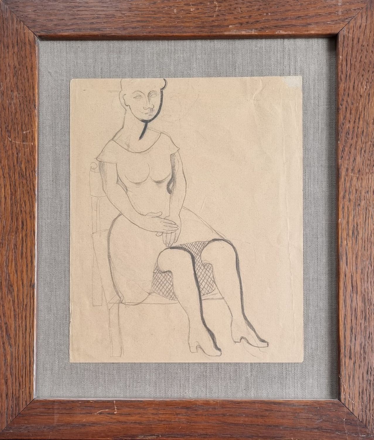 | Kresba tužkou, autorem nesignováno. Práce byla vystavena v Mánesu v roce 1927 a reprodukována v měsíčníku Volné směry. Jedná se o skicu k soše s názvem "Děvče se psem" z roku 1920. Socha z pálené hlíny je reprodukována v knize Josefa Císařovského "Oto Gutfreund" pod číslem 31. List je rámován v tmavě hnědém dřevěném rámu na plátěném podkladu. |