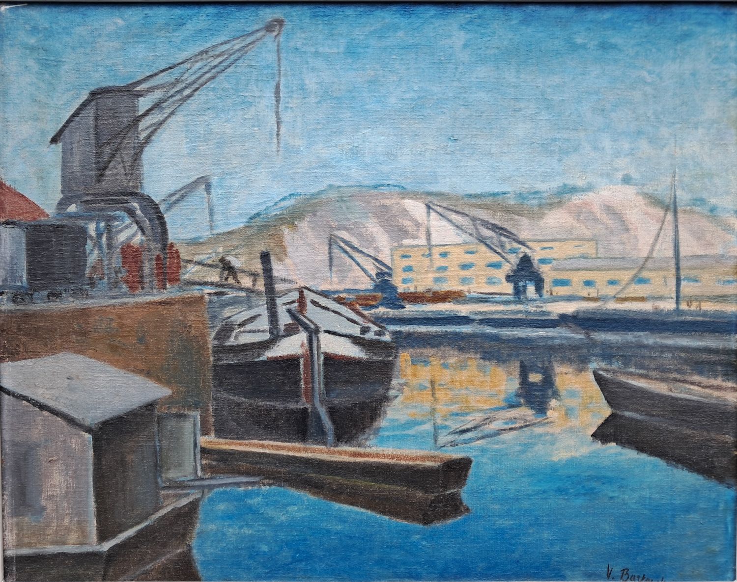 | Olej na plátně, autorem podepsaný vpravo dole. Práce je opatřena hlubokým hnědým dřevěným rámem s bílou lištou. |
