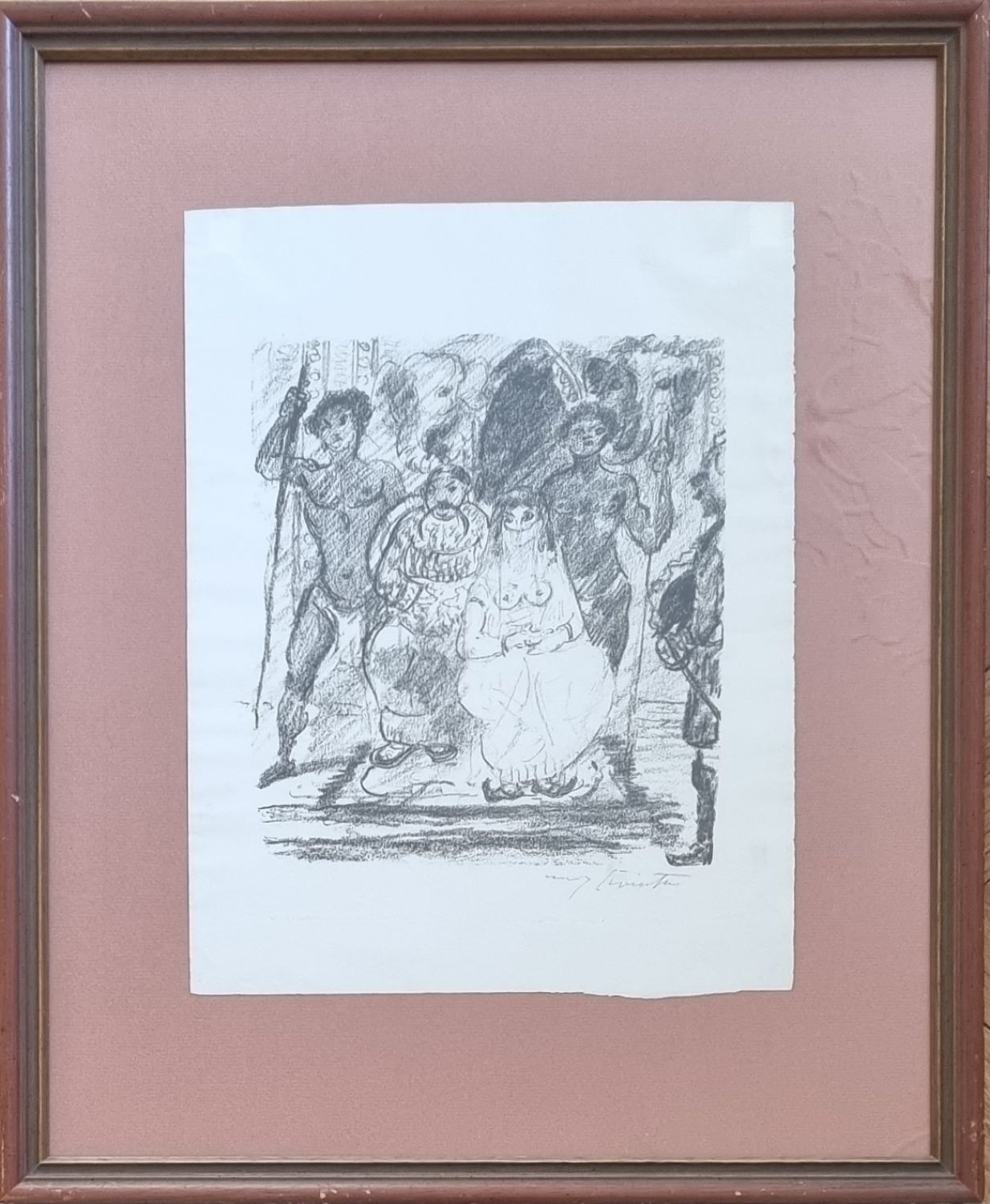 | Litografie autorem vpravo dole tužkou podepsaná. Opatřeno dřevěným rámem se soustruženým profilem, na rubu podkladového kartonu staré razítko "Antiquariat Rainer Kirchner Dortmund". |
