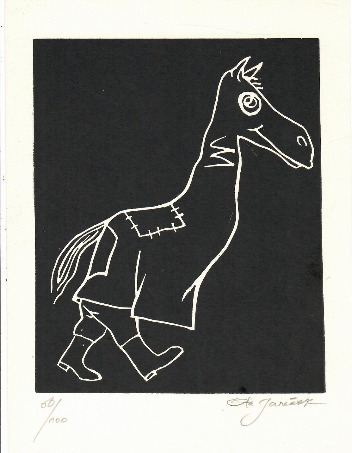| Původní linoryt, autorem při spodním okraji tisku tužkou signováno a číslováno 60/100. Volný list. Loubal, L.: Ota Janeček Soupis grafického díla č. 672. |