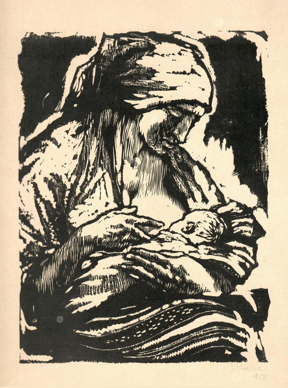 | Linoryt, ilustrace k lidovým básním jižních Slovanů. Autorem při spodním okraji tisku tužkou signováno a datováno. Na papíře místy bílé flíčky. |