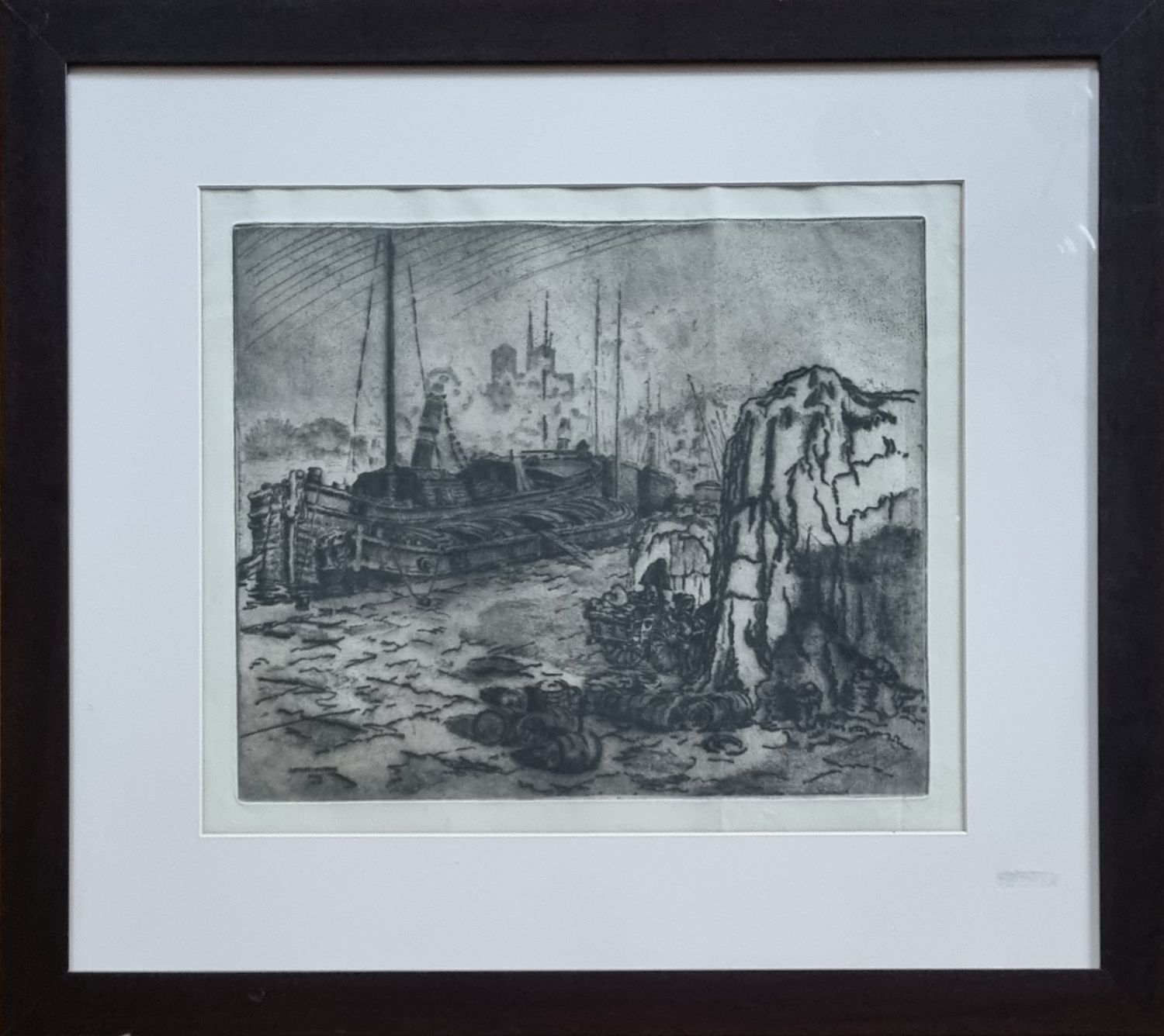 | Měkký kryt, vpravo dole v desce signovaný, datovaný a s uvedením místa tisku (Paris). Práce je opatřena bílou hlubokou paspartou a zarámována v tmavě hnědém dřevěném rámu o celkovém rozměru 610 x 680 mm. List je ve své pravé části podélně lehce zvrásněný. |