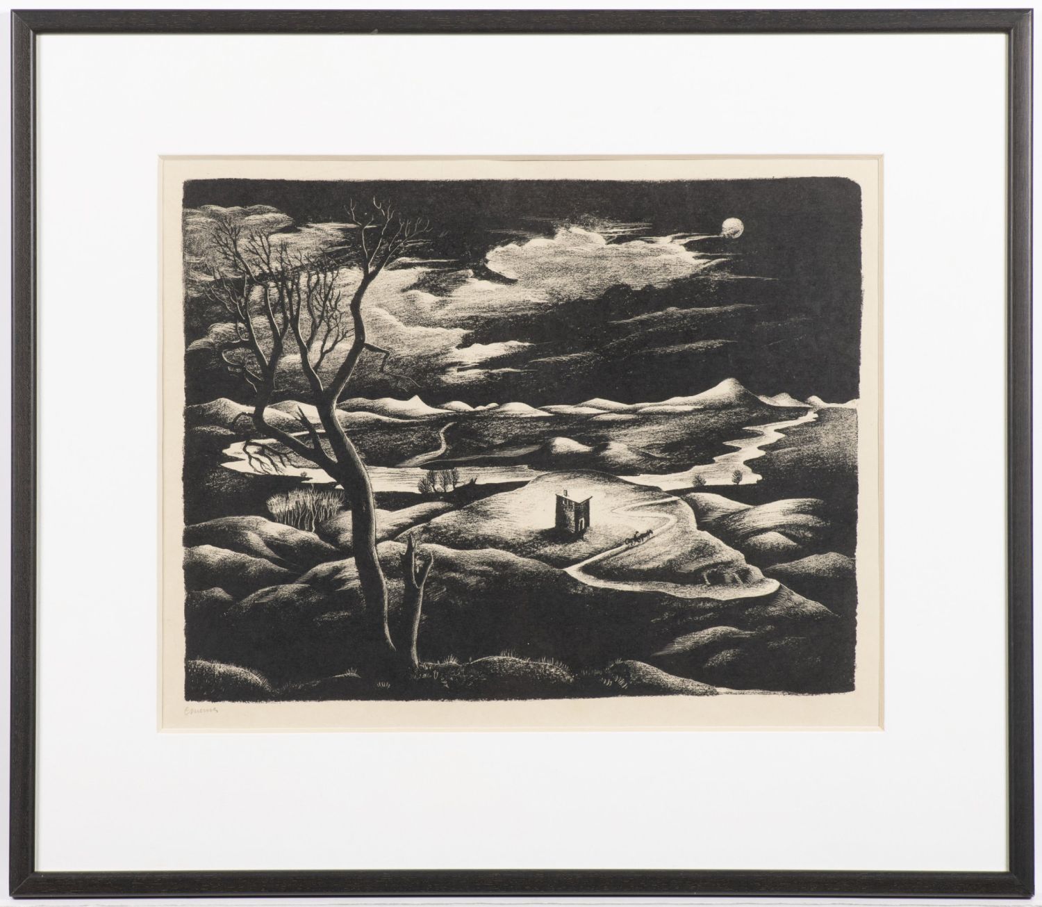 | Původní litografie, autorem tužkou vlevo dole podepsaná. Zarámováno v jednoduché černé liště o rozměru 490 x 560 mm v hluboké bílé paspartě. |