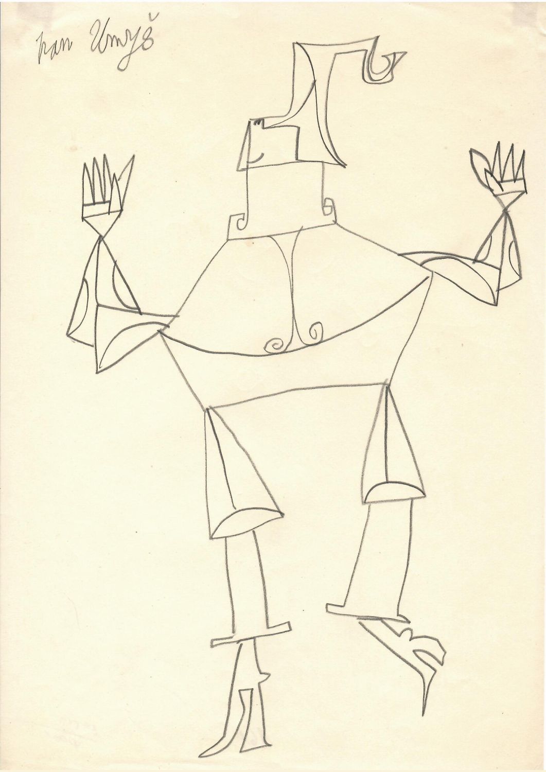 | Kresba tužkou, na zadní straně v obou horních rozích stopy po předchozí adjustaci. |
