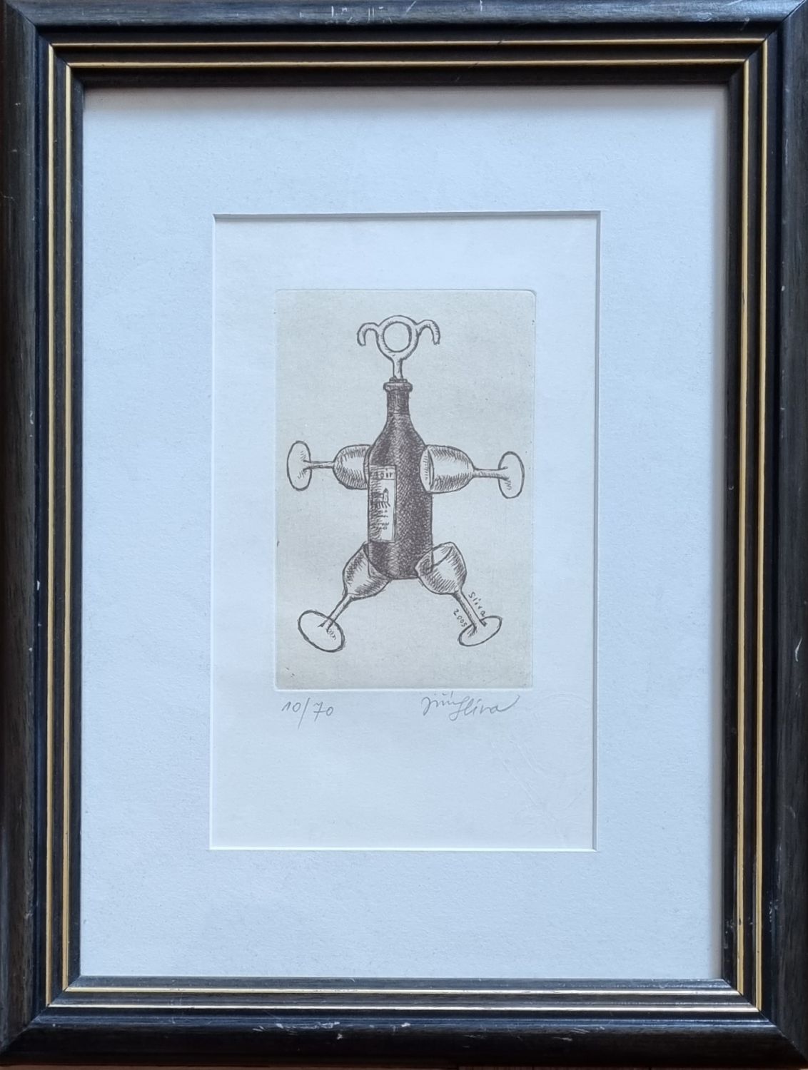 | Původní lept, vpravo dole autorem tužkou podepsaný, vlevo dole číslovaný 3/60. Datace v desce. Práce je opatřena hlubokou paspartou a zarámována v temném rámu se zlacenými linkami. |