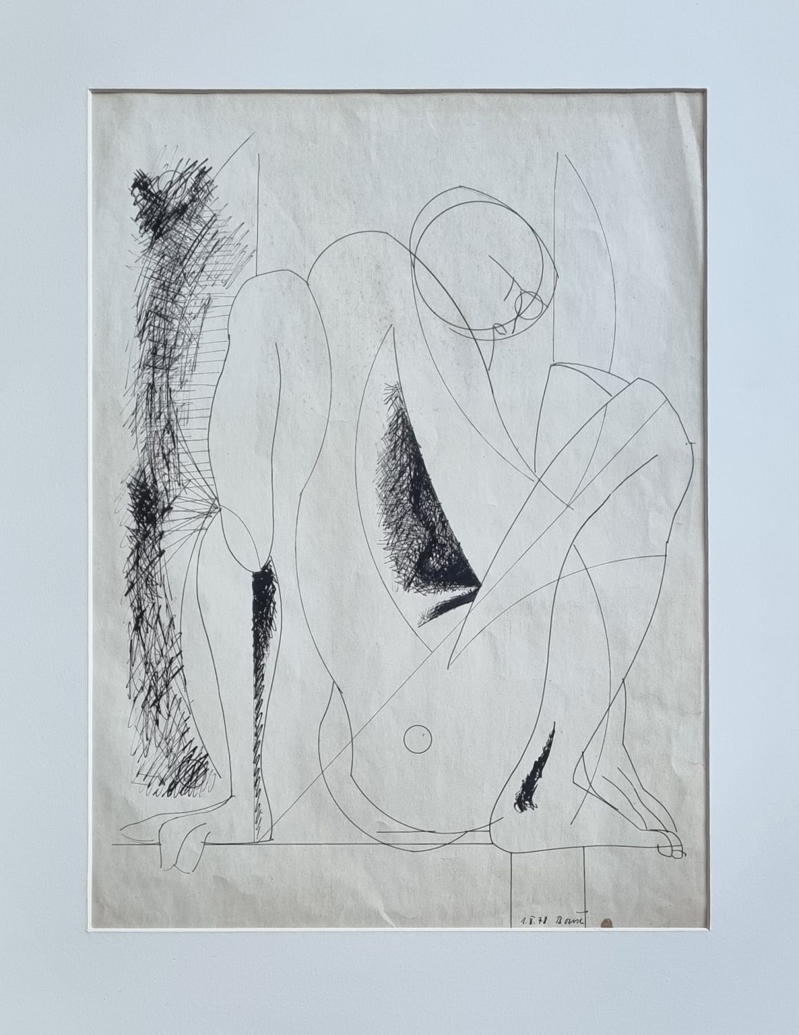 | Kresba tuší, vpravo dole autorem podepsaná a datovaná (1.X.78). Volný list, při horních okrajích uchycený k papírové paspartě. |