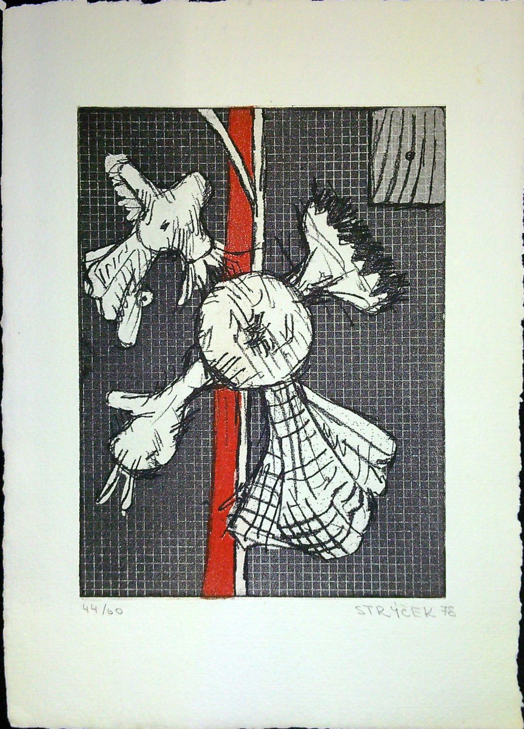 | Kombinovaná technika, rozměr tisku 197 x 147 mm. Autorem při spodním okraji tisku signováno, datováno a číslováno. Č.ex. 44/60. |