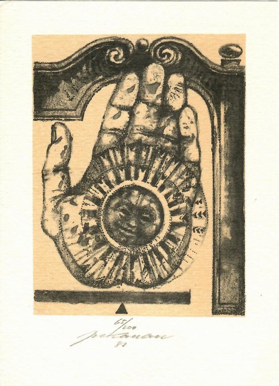 | Litografie o rozměru tisku 105 x 80 mm. Autorem tužkou signováno, datováno a číslováno. Č.ex. 65/200. |