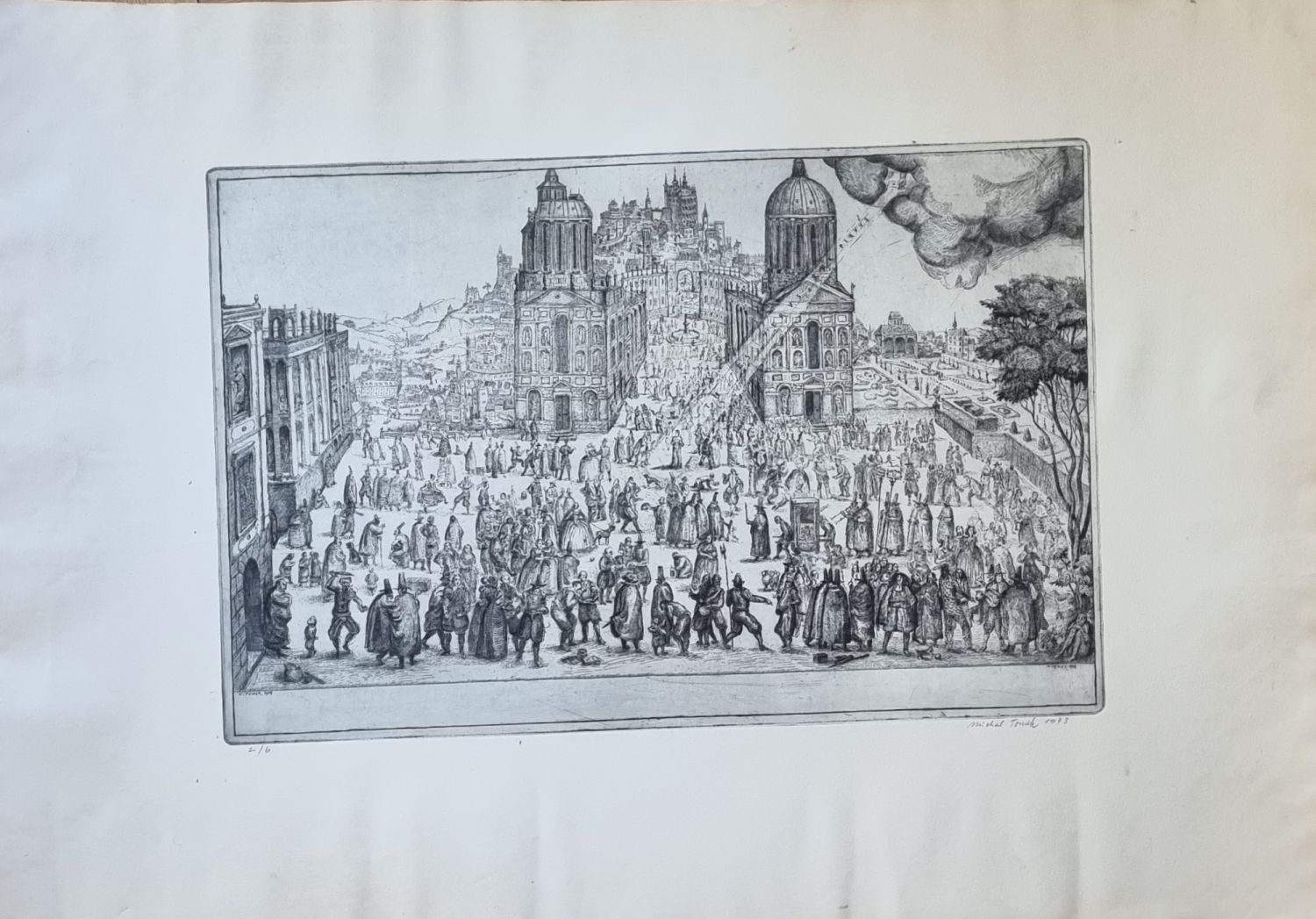 | Lept a signovaný a datovaný v desce, vpravo pod deskou autorem tužkou podepsaný a datovaný, vlevo dole číslo tisku 2/6, volný list. |