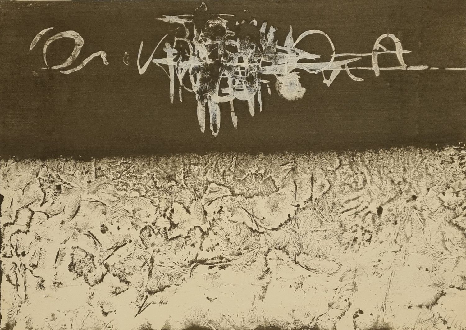 | Mrazovka s monotypem. Vpravo dole autorem tužkou podepsáno a datováno, volný list. |