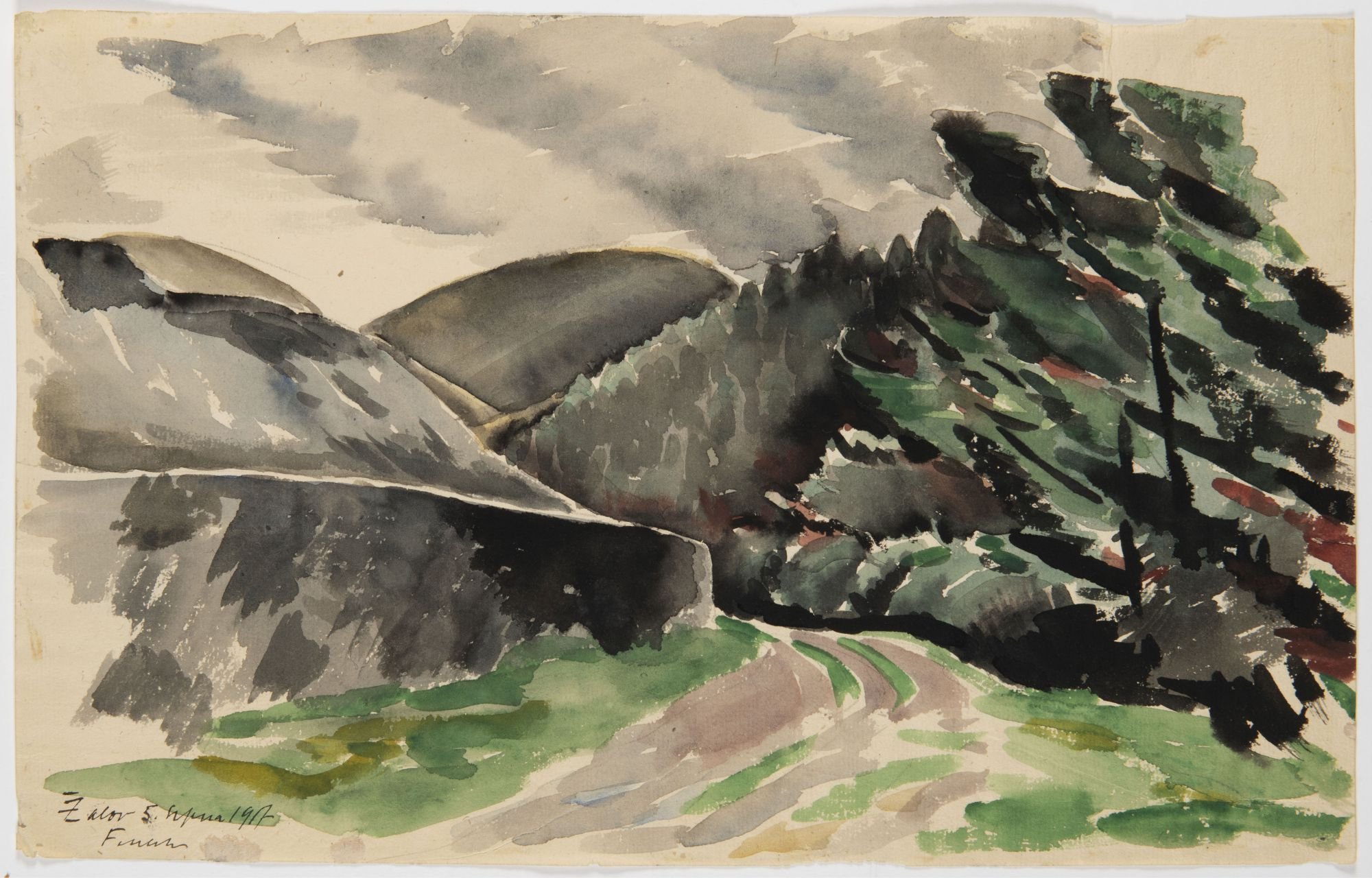 <p>Akvarel na papíře, vlevo dole signovaný a datovaný "5. srpna 1917". Práce je opatřena hlubokou paspartou a světlým přírodním rámem z olše. Akvarel pochází z pozůstalosti Bedřicha Feuersteina.</p>