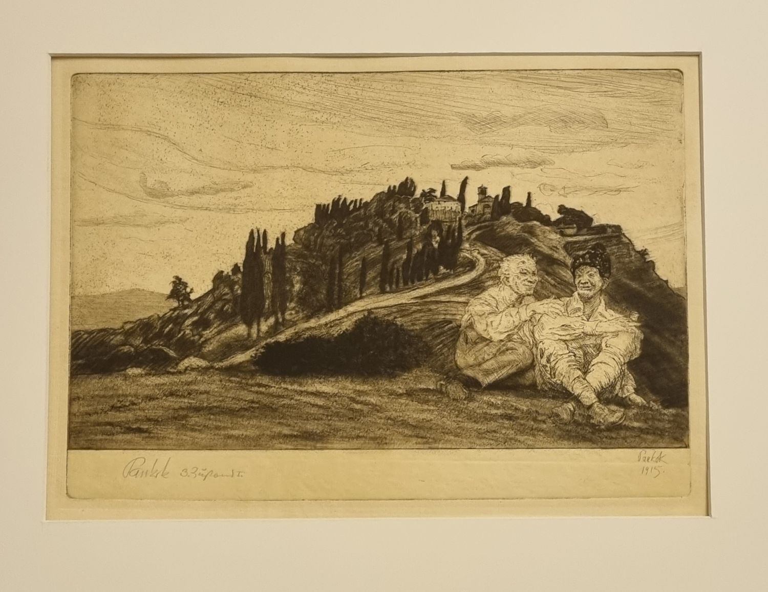 | Jeden ze 150 výtisků třetího stavu. Lept, suchá jehla a vernis mou - vpravo dole v desce sigovaný a datovaný, vlevo dole v desce autorem tužkou podepsaný s poznámkou 3. Zustund (stav) I. Volný list při horních okrajích pap. páskou uchycený do pasparty. Na rubu práce staré vlastnické razítko "Jaroslav Mervart". |